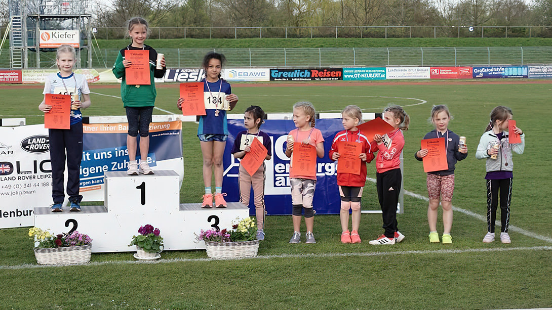 Aus der Altersklasse 10 gingen drei Mädchen und vier Jungs an den Start. Disziplinen wie Hochsprung, Stabhochsprung oder der Hürdenlauf standen für die Athleten zum ersten Mal auf dem Wettkampfplan. Trotz starker Konkurrenz durch den LC Eilenburger Land konnten sich die Mädels behaupten. Anna Möslein konnte ihr hartes Training der letzten Wochen unter Beweis stellen und belegte mit 2.818 Punkten den 3. Platz und konnte mit einem Lächeln und einer Bronzemedaille nach Hause gehen.