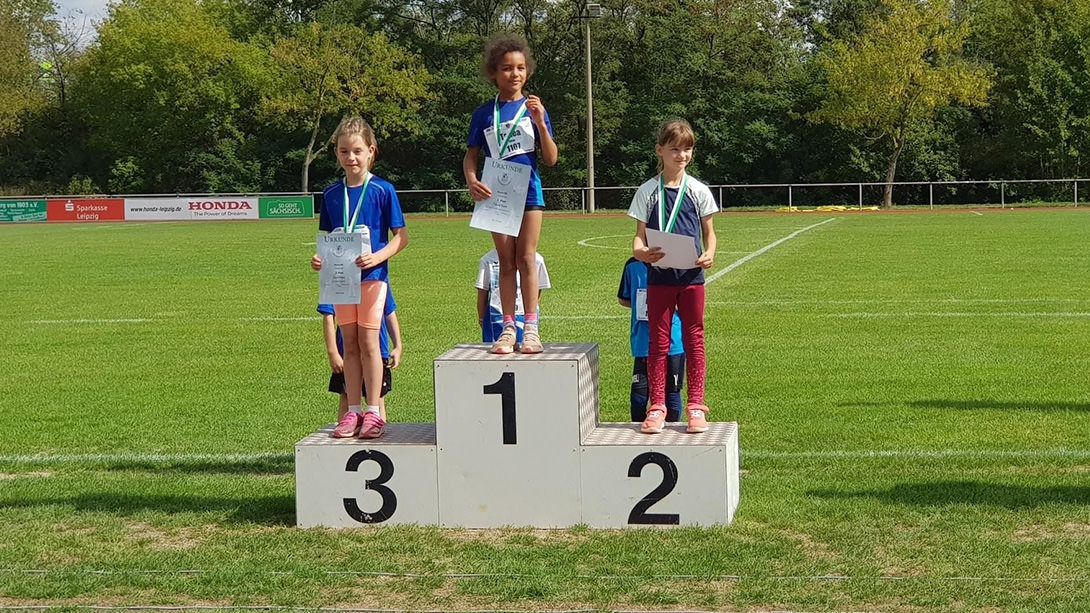 Am Samstag, dem 09.09.22 fand in Markleeberg das 31. Sportfest der TSG Markleeberg statt. Bei schönstem sonnigem Wetter traten unsere Sportler der U10 zum Dreikampf an. Niklas Plomin setzte sich in der M9 mit unglaublichen 999 Punkten (50m Sprint: 8,02s; Weitsprung: 3,97m; Weitwurf: 32,20m) durch und belegte mit weitem Abstand zu seinen Mitstreitern Platz 1 . Doch auch Sam Kausch zeigte sich in Markleeberg von seiner stärksten Seite und behauptete sich mit dem 1. Platz in seiner Altersklasse der M6. Auch Tim Fabian mit Platz 2 (M8) sowie Henry Köttnitz mit Platz 2 (M9) behaupteten sich und zeigten ihr Können. Aber auch die Leistungen der Mädchen können nicht unerwähnt bleiben. Somit erreichte zum Beispiel Tabea Edao mit 621 Punkten (50m Sprint: 9,42s; Weitsprung: 2,60m; Weitwurf: 9,50m) und großen Abstand zu ihren Mitstreiterinnen den 1. Platz in der W6. Doch auch die älteren Mädels, wie Louisa Böhme mit Platz 3 (W7), Nora Grimmer mit Platz 2 (W8), Mareike Hähnel mit Platz 3 (W8) und Mila Burnett mit Platz 3 (W9) zeigten am Samstag wie viel in ihnen steckt und behaupteten sich in ihren Altersklassen.