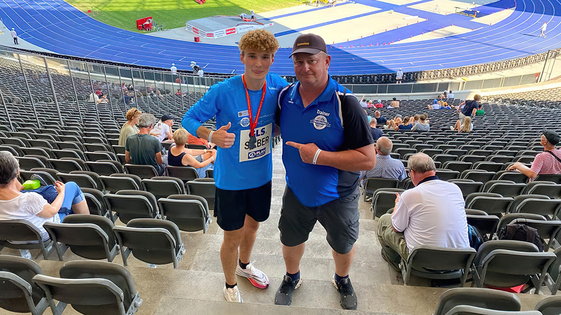 Am Sonntagmorgen wurde noch ausgiebig auf der Hotelterrasse gefrühstückt. Erste kleine Taktikbesprechungen wurden durchgeführt und dann ging es auch schon ins Stadion. Wie gesagt, dieses Olympiastadion hat noch immer seinen Reiz. Während es in den Sprintrennen sehr gute Zeiten gab, sind die Mittelstreckenrennen immer von viel Taktik geprägt. Und so auch dieses Mal. Zwar ging die Post auf den ersten 100m ab, aber danach sortierte sich das Feld sehr schnell ein. In mäßigen 54,95 sec ging es in die zweite Rennhälfte. Jetzt setzten die Positionskämpfe ein. Eingangs der Zielgeraden waren noch 6 Sportler im unmittelbaren Medaillenbereich. Und auch diesmal konnte Rocco mit seinem starken Finish überzeugen. Am Ende musste er nur dem Überraschungssieger Tim Holzapfel den Vortritt lassen. Aber Platz 2 ist ein tolles Ergebnis und aller Ehren wert. Nach genau 30 Jahren, damals war es Carsten Eich der Edelmetall bei Deutschen Meisterschaften für MoGoNo holte, haben wir wieder einen Medaillengewinner. Nach Gold mit der Staffel 4x400m und Silber bei den Aktiven über 800m, darf man gespannt sein was noch in 4 Wochen bei den U23 Meisterschaften geht.