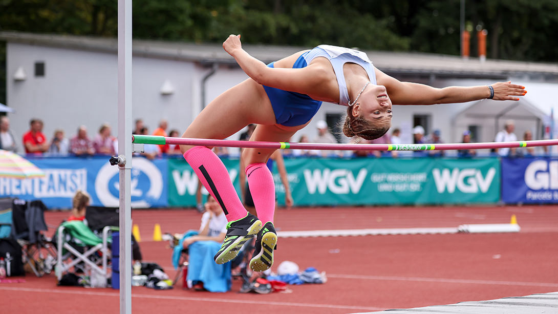 Mit insgesamt 26 Frauen und 12 Starterinnen in der U23 war es ein sehr großes und leistungsstarkes Feld. Aber schon im Vorfeld konnte man erkennen, dass Lilly gut aufgestellt war und sich berechtigte Chancen auf eine gute Platzierung ausrechnen konnte. Was dann aber noch an Leistungssteigerungen bei allen Teilnehmerinnen passierte, war schon der Wahnsinn. Über die 100m Hürden konnte Lilly gleich mit einer MK-PB von 14.15 sec und der schnellsten Zeit aller ein Achtungszeichen setzen. In einem gut durchdachten Zeitplan ging es dann gleich weiter zum Hochsprung. Hier sprang sich Lilly in einen wahren Rausch. Über die Stationen 1.62, 1.65m auch wieder PB lagen dann schon 1.68m auf der Latte. Auch diese drei Versuche waren sehr vielversprechend, doch diesmal sollte es noch nicht reichen.