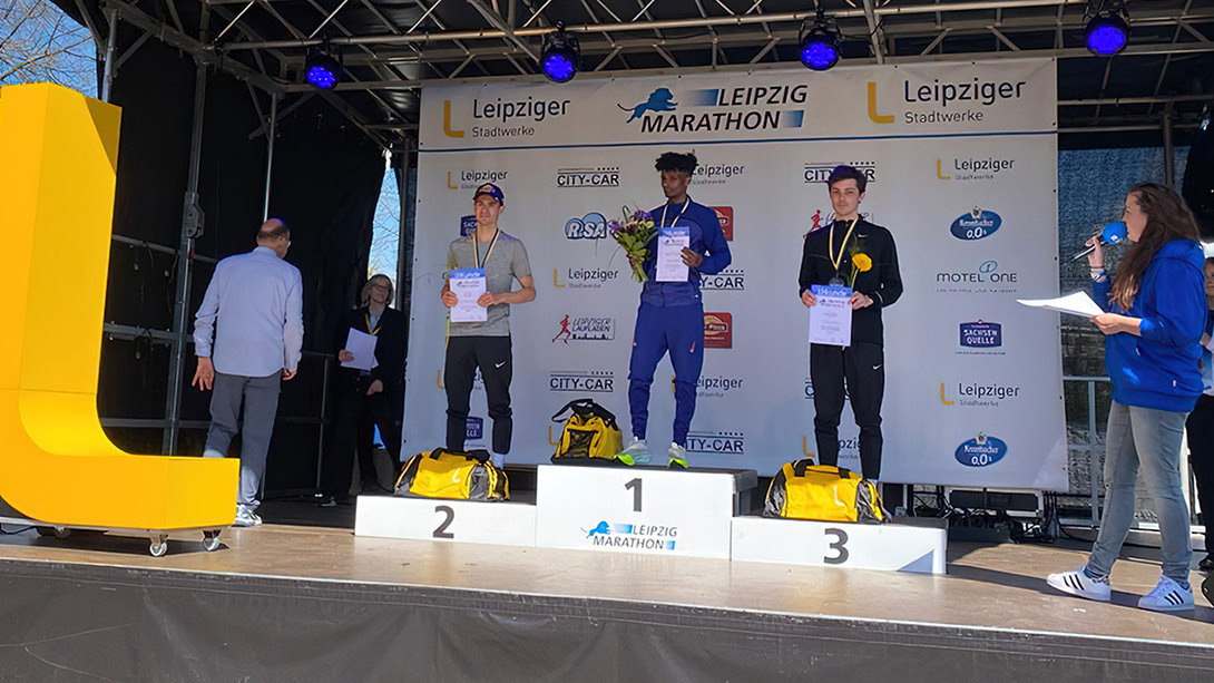 Die Halbmarathon-Strecke war mit 2500 Teilnehmern das zahlenmäßig größte Feld. Mit dabei Habtamu, der nach zwei Startabsagen im letzten Jahr, nun endlich an den Start gehen konnte. Weitestgehend verlief seine Vorbereitung störungsfrei. Nach dem Starterfeld galt er als Favorit auf Leipzigs Straßen. Aber nicht Habtamu übernahm das Heft des Handelns, sondern ein Wintersportler, der seine Ausdauer testen wollte. Habtamu hielt sich an die Absprachen und konnte dann an der Tabaksmühle die Lücke zum Führenden schließen. Fortan liefen sie die nächsten Kilometer gemeinsam, und konnten sich so in die Führungsarbeit bei reichlich Gegenwind reinteilen. Mit gleichmäßigen Zwischenzeiten lief es Richtung 68 min hinaus. Drei Kilometer vor Ziel konnte Habtamu dann noch einmal zulegen und somit die entscheidenden Meter zwischen sich und Jakob Lange legen. Mit der Siegerzeit von 1:08,30 Std. lief Habtamu zu neuer Bestleistung und kann sich nunmehr in der deutschen Spitze in der U23 auf Rang 3 festsetzen.
