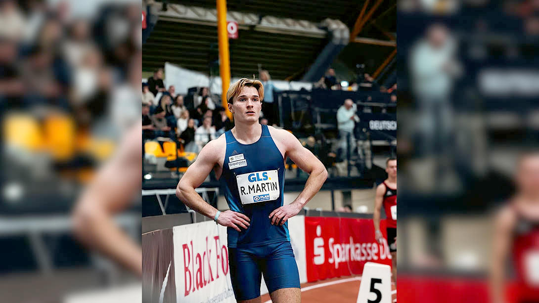 Nachdem Robert Farken drei Tage vor den Deutschen Hallenmeisterschaften krankheitsbedingt absagen musste, ruhten die Hoffnungen der Leipziger Topathleten auf den "Beinen" von Rocco Martin. Mit einer sehr guten Ausgangsposition, Platz 2 der Meldeliste, erhielt Rocco dann auch für sein Halbfinale eine gute Bahn 6. Allerdings war es zum Zeitpunkt des Halbfinales sehr unruhig in der Halle. In unmittelbarer Nähe der Zuschauer war es sehr laut. Rocco glaubte einen Rückschuss gehört zu haben und lief nicht mit letzter Konsequenz an. Doch weit gefehlt, der Lauf wurde nicht zurückgeschossen und so musste er gleich zu Beginn einen kleinen Rückstand aufholen. Das macht sich vor allem in der Halle nach 150m bemerkbar, wenn alle Läufer auf die Innenbahn dürfen. Auf Position 3 liegend war dies nicht gerade die Ausgangssituation, die wir uns vorgestellt hatten. Mit viel Mühe konnte er sich zwar noch auf Position 2 im Lauf vorarbeiten, aber mit einer Endzeit von 47,63 sec und Platz 6 nach allen Halbfinals bedeutete dies für das Finale die ungünstige Bahn 1.